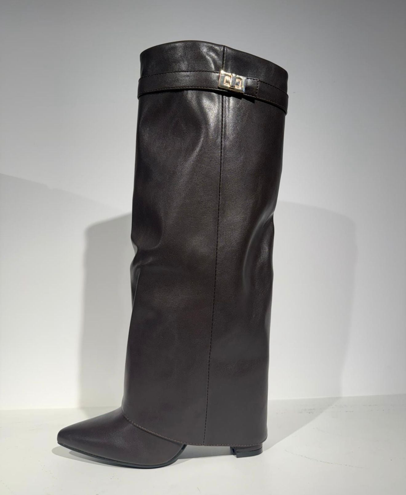 Ga voor tijdloze klasse met deze lange leren botten in een warme bruine tint.