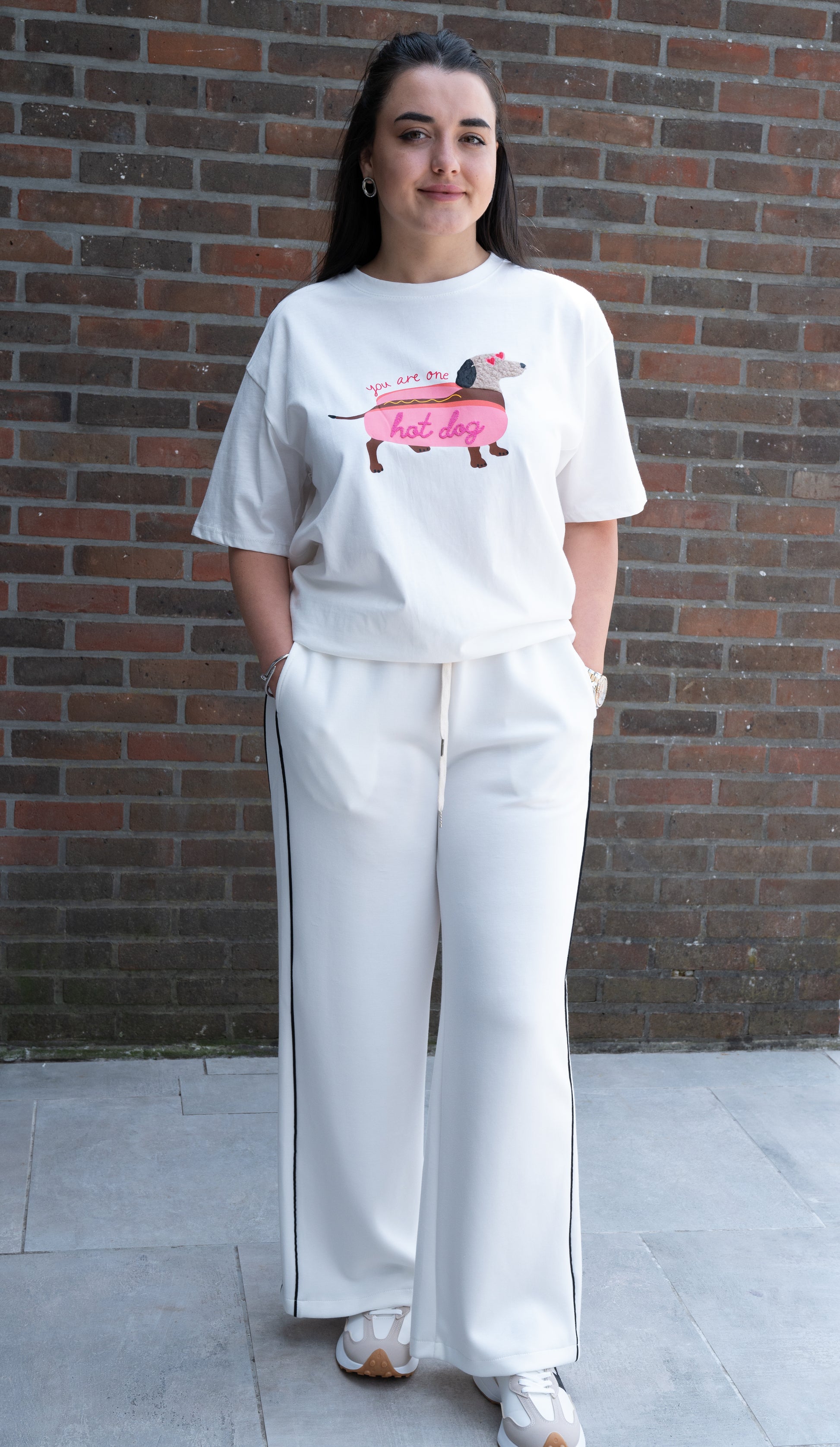 Hotdog is een fun en luchtig T-shirt met een knipoog. Gemaakt van zachte, ademende stof en ontworpen voor die zomerse dagen waarop comfort en humor hand in hand gaan. Of het nu gaat om een grappige print, een opvallend detail of gewoon de naam zelf – Hotdog zorgt voor een glimlach en een relaxte look. Perfect voor festivals, barbecues of een casual dagje in de zon.