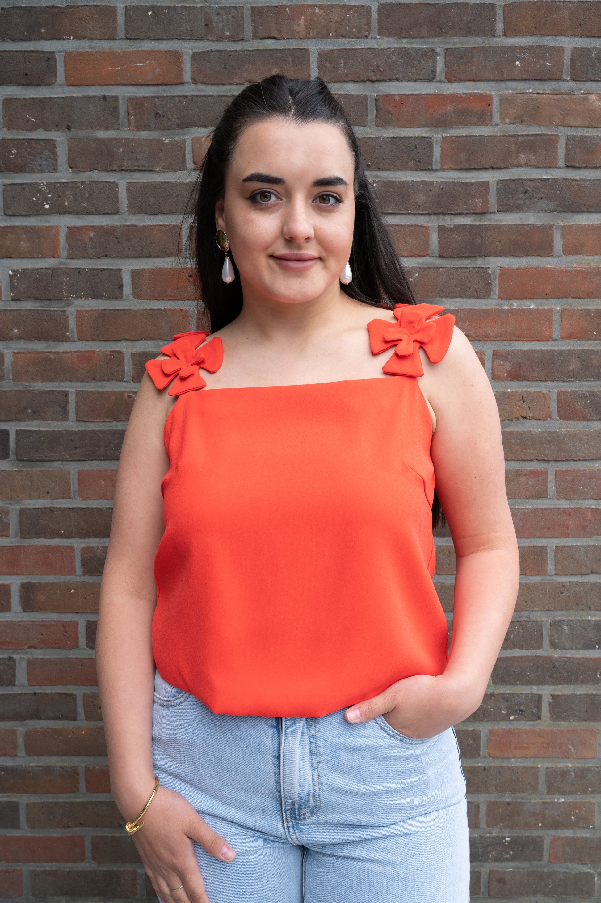 Deze luchtige top is een echte zomertopper, met elegante schouderbandjes en afgewerkt met bloemachtige details die zorgen voor een romantische en vrouwelijke look. Fleur voelt licht en comfortabel aan, perfect voor warme dagen waarop je stijlvol én ontspannen voor de dag wil komen. Combineer het met een high-waisted short, rok of jeans voor een frisse, dromerige outfit met een vleugje speelsheid.