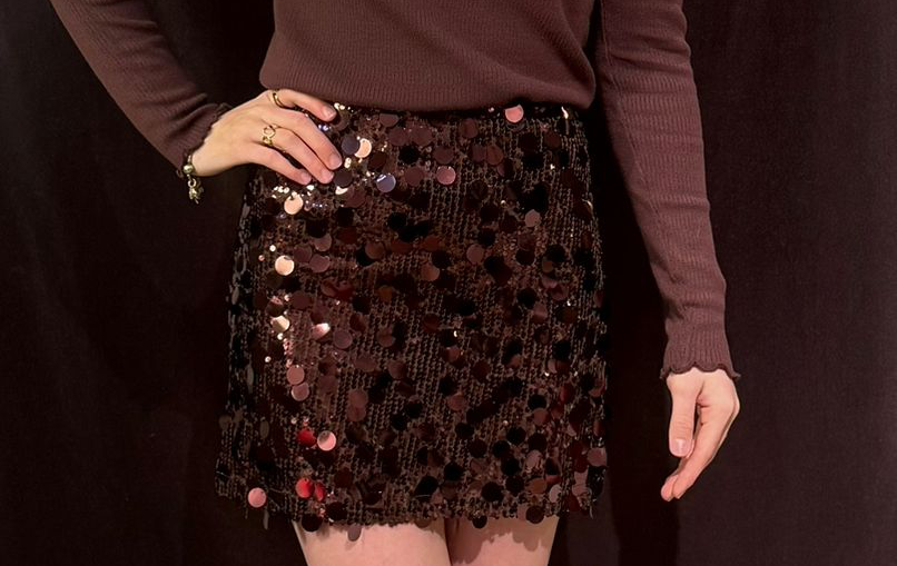 Deze bruine rok bevat pailletten die de rok in het licht nog meer doen shinen.